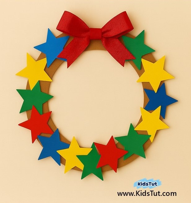 - Step 04: Paste the star shapes around your wreath base to cover it.