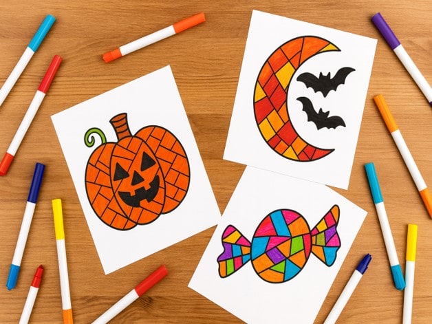 Do you like to have fun with Halloween coloring pages? Then here is a great opportunity for that. We have brought you some mosaic Halloween coloring pages. This activity is great for young children to get creative and have fun with cute Halloween-themed images. Not only can you color, but you can also draw pattern art or dot painting. So help your children develop their creativity with the template pages below.
