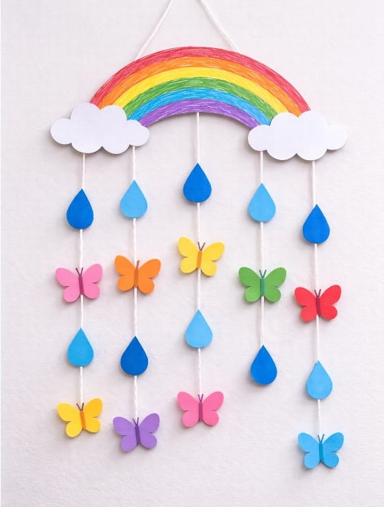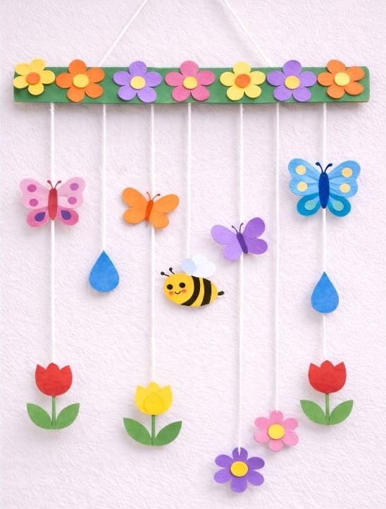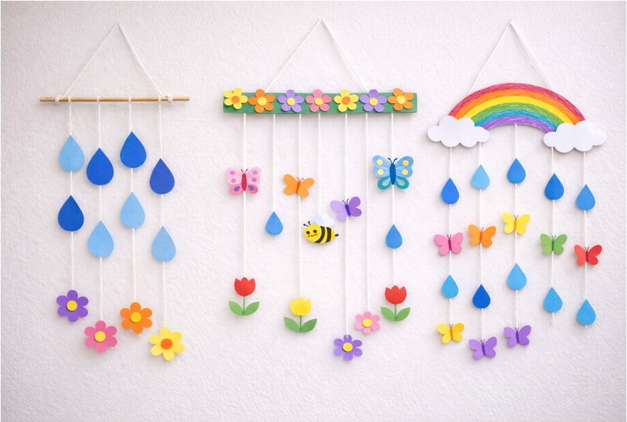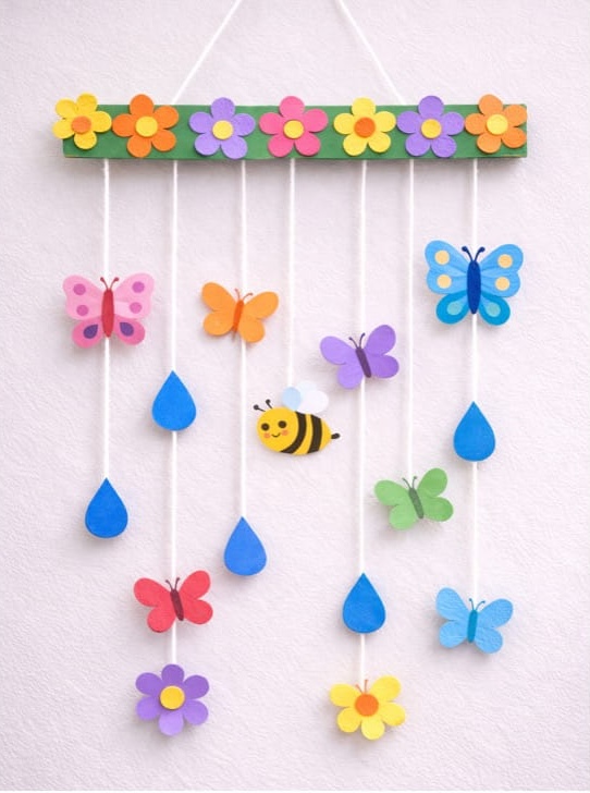 This spring craft is bright, fun, and full of nature! Kids can make hanging decorations with rainbows, butterflies, flowers, and raindrops. It’s simple, creative, and perfect for adding color to classrooms or bedrooms.