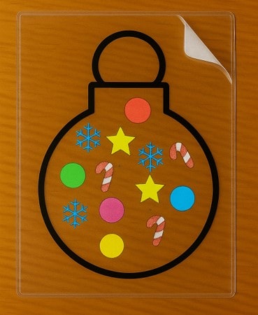 Place the ornament outline onto clear sticker paper, a laminating sheet, or carefully tape over the back. Clear sticker paper works best for a smooth finish.