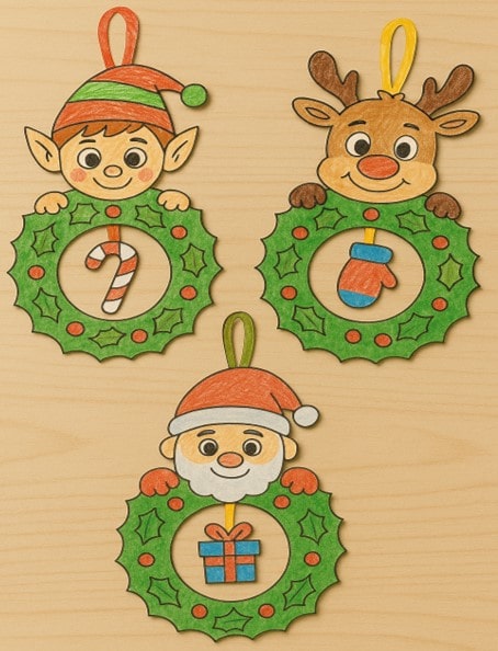 Today, we’re going to make beautiful handmade wreath crafts to decorate our classroom for the holidays! Get ready for a fun experience full of coloring, cutting, and gluing. You can choose your favorite character (Santa, an elf, or a reindeer) and create your own festive Christmas wreath with them. Kids can also boost their creativity by adding extra decorations like glitter, stickers, or ribbons along with the main craft pieces. Let’s see how to make it step by step!