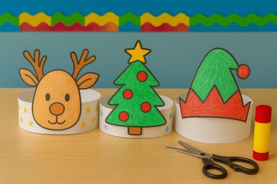 • Step 6: Finally, attach both ends of the strip so it fits your child’s head—ready to wear and play! 🎄✨