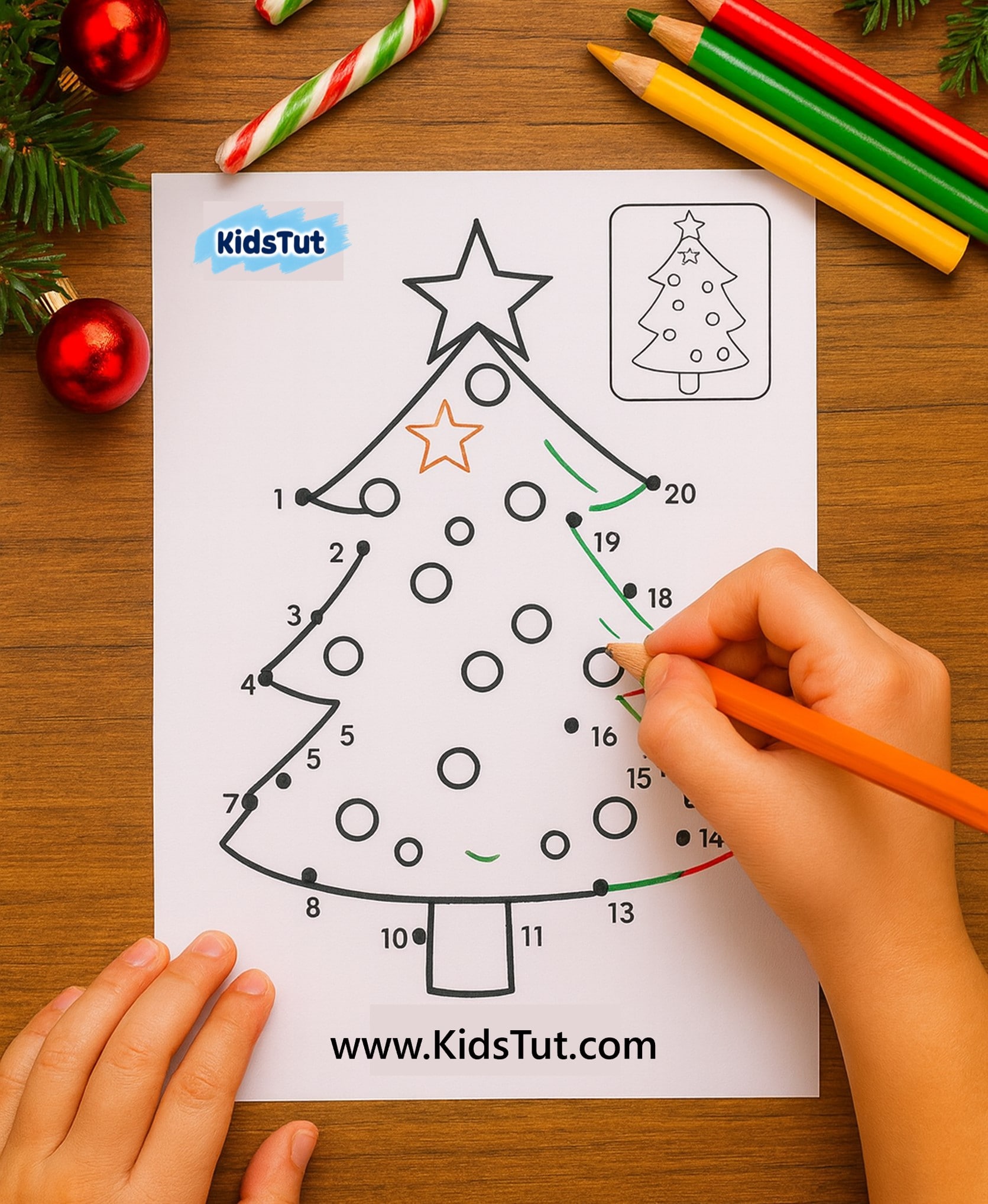 Connect the dots from 1 to 20 to complete the Christmas tree.