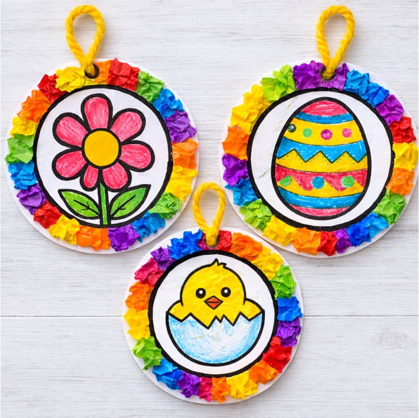 Easter ornament crafts are a bright and cheerful way for kids to celebrate the season! With colorful eggs, chicks, flowers, and rainbow tissue borders, children can make their own hanging decorations to display at home or in the classroom. Each ornament is unique, helping kids practice coloring, cutting, and gluing while having fun.