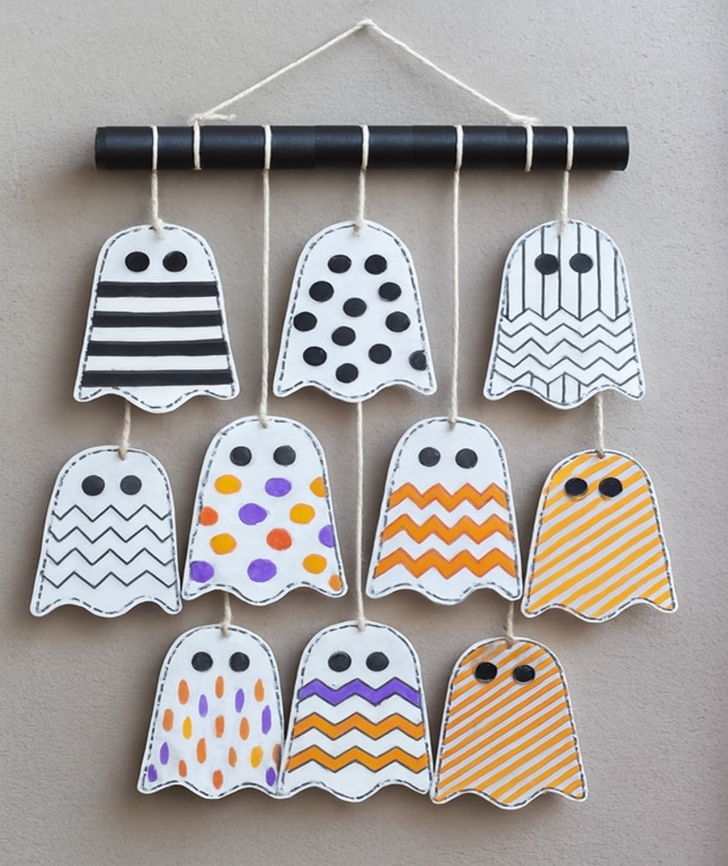 Today, we are going to make a beautiful DIY Halloween decoration. This is also a very easy and simple craft. That is why it is an easy craft for little kids. Especially, these Halloween decorations are made of funny ghosts with different patterns. This craft will definitely bring a Halloween atmosphere to your classroom.