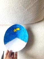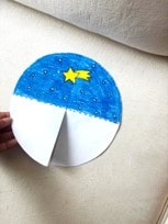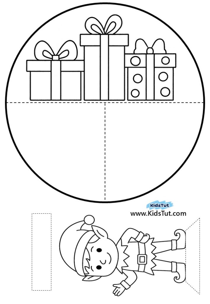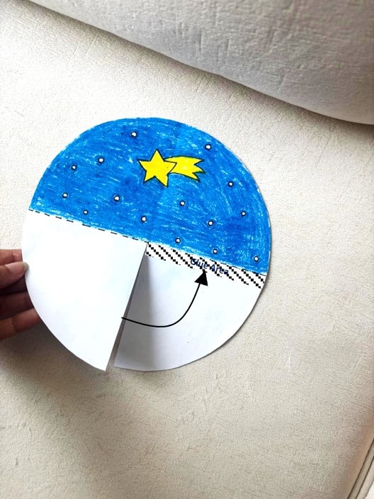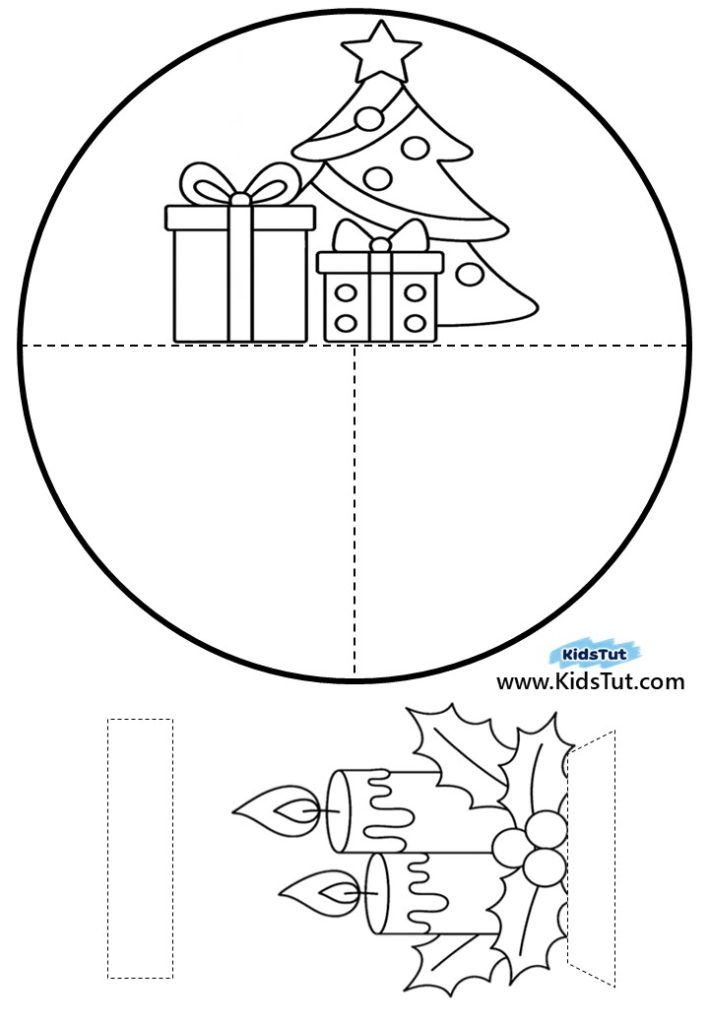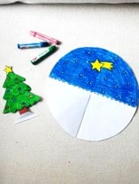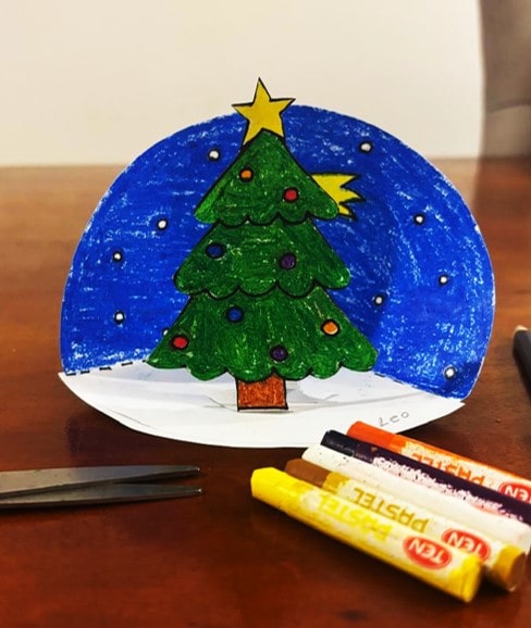 Step 2: Now it’s time to color! Use crayons or markers to decorate your template. You only need to color the background on one half of the circle, plus the Christmas image (like the Christmas tree, snowman, Santa) on the other part of the template.
