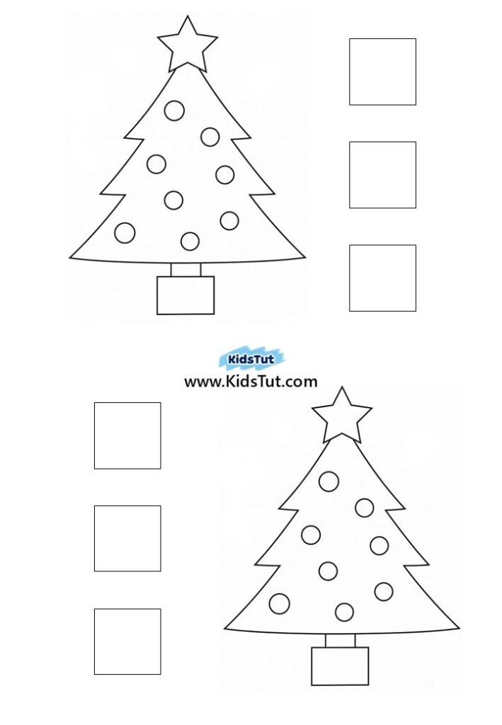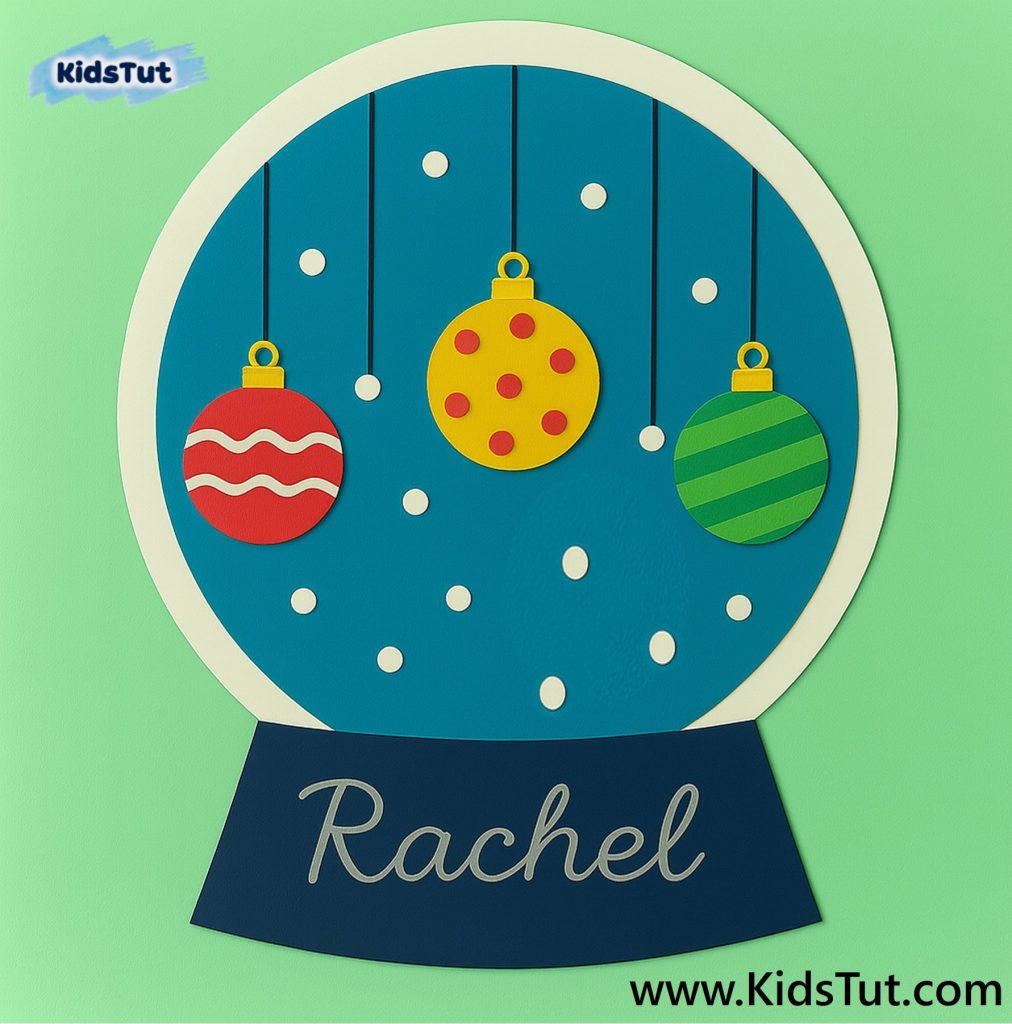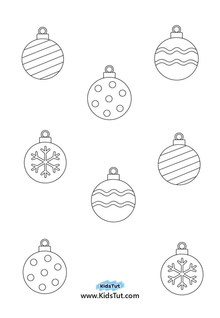 You can print, color, and cut out the given baubles. Then paste them on your globe. Now draw lines to show them hanging. Finally, paste small pieces of cotton pads or dot stickers around the baubles.