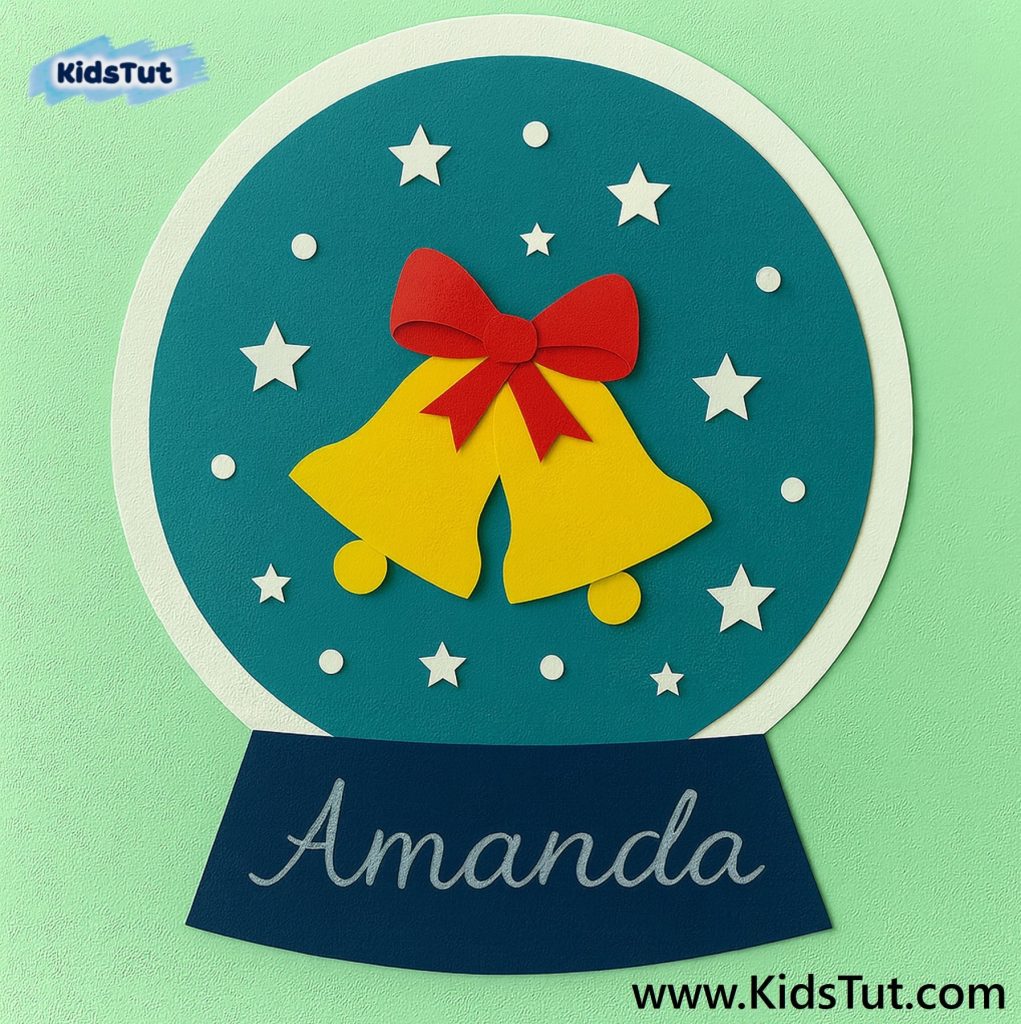 Print, color, and cut the given bell image. Then paste it onto your globe. Finally, make the background look festive with stars.