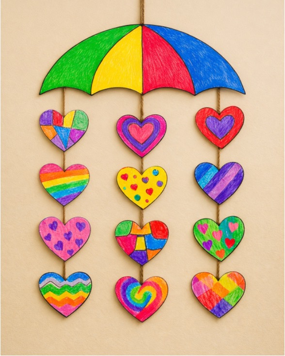 This colorful heart umbrella craft is a sweet and easy project for kids. It mixes the shape of a heart with the fun look of an umbrella, making it perfect for Valentine’s Day or any rainy day art time. Children will enjoy cutting, pasting, and decorating while creating something bright and cheerful.