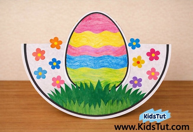 01. Colorful Easter Egg Paper Craft with Flowers & Grass: