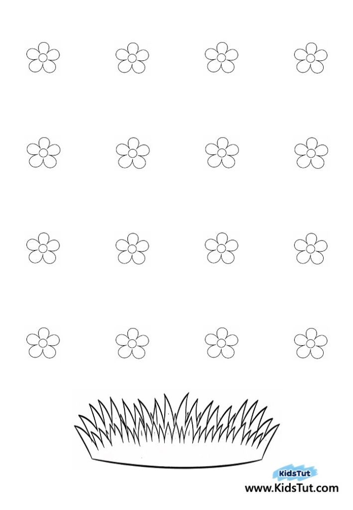 1. Print the given templates on a white sheet. You have 2 templates: one with a circle and an egg, the other with flowers and grass.