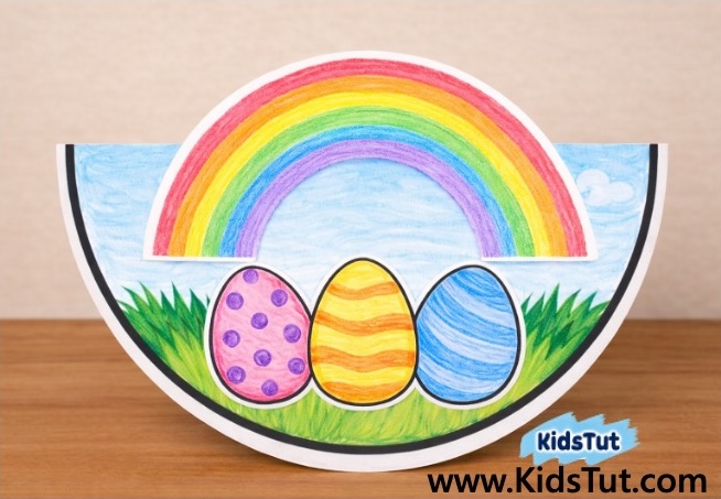 2. Color the circle bottom image, rainbow, and eggs using crayons, markers, or colored pencils.