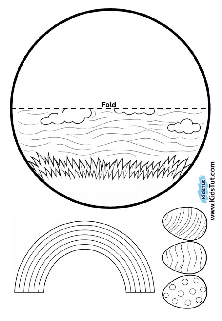 1. Print the given template on a white sheet. You can print the circle with a rainbow and eggs.