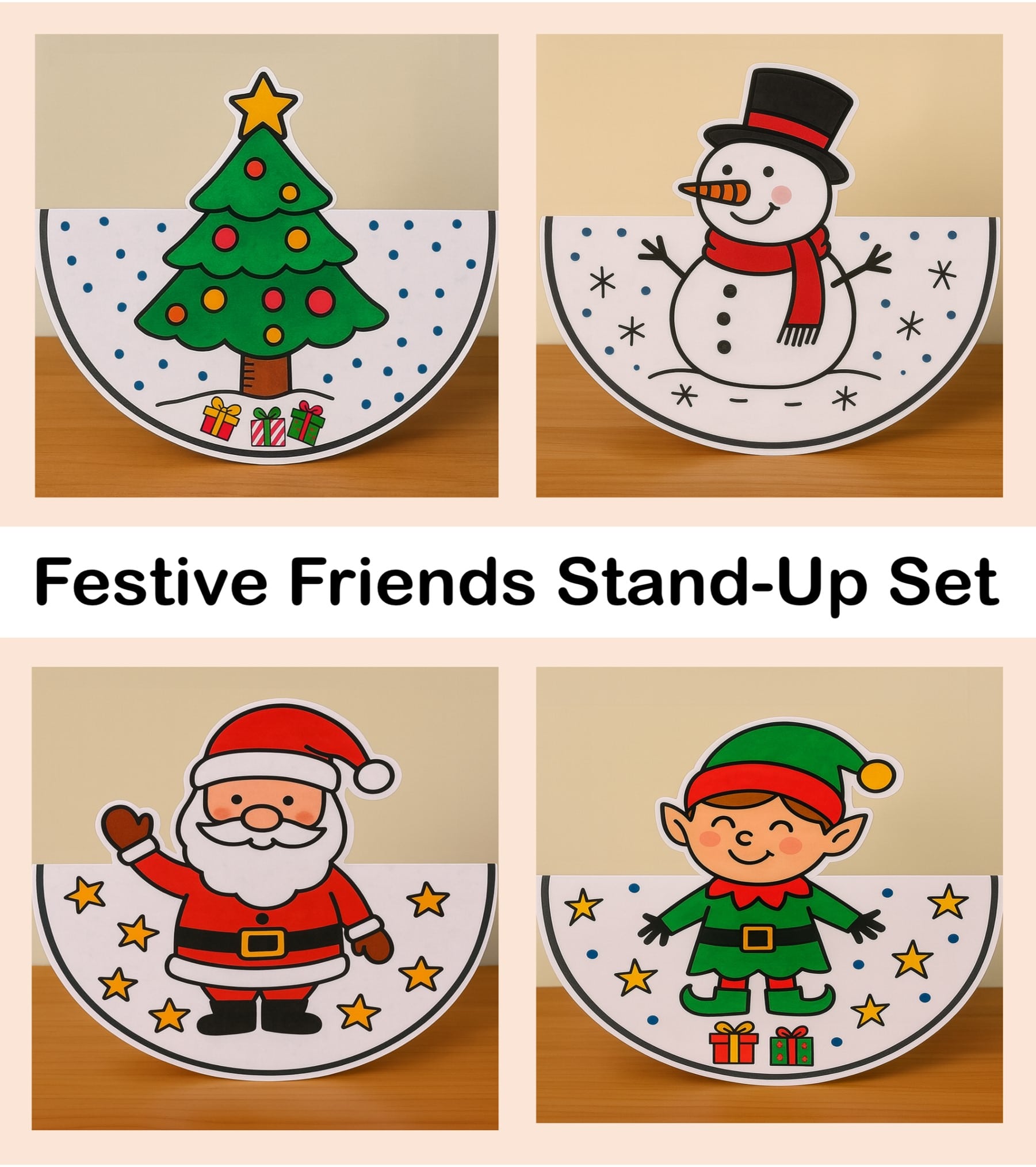 - Christmas character: Color the character with any matching colors you like.