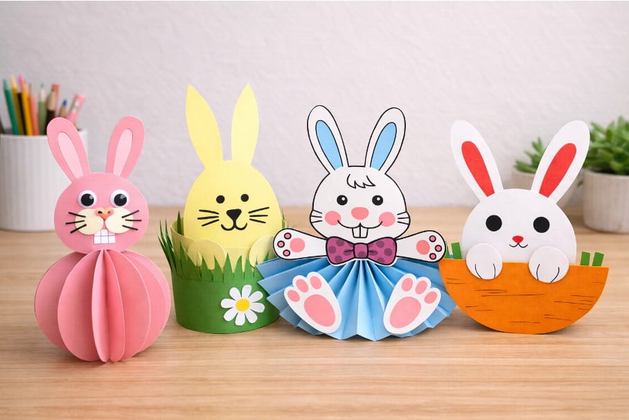 Easter is the perfect time to make cute bunnies that bring smiles and fun! These easy paper crafts are full of bright colors and playful designs, and kids will love creating their own bunny friends. With just paper, scissors, glue, and crayons or markers, children can fold, cut, and decorate to make adorable bunny shapes.