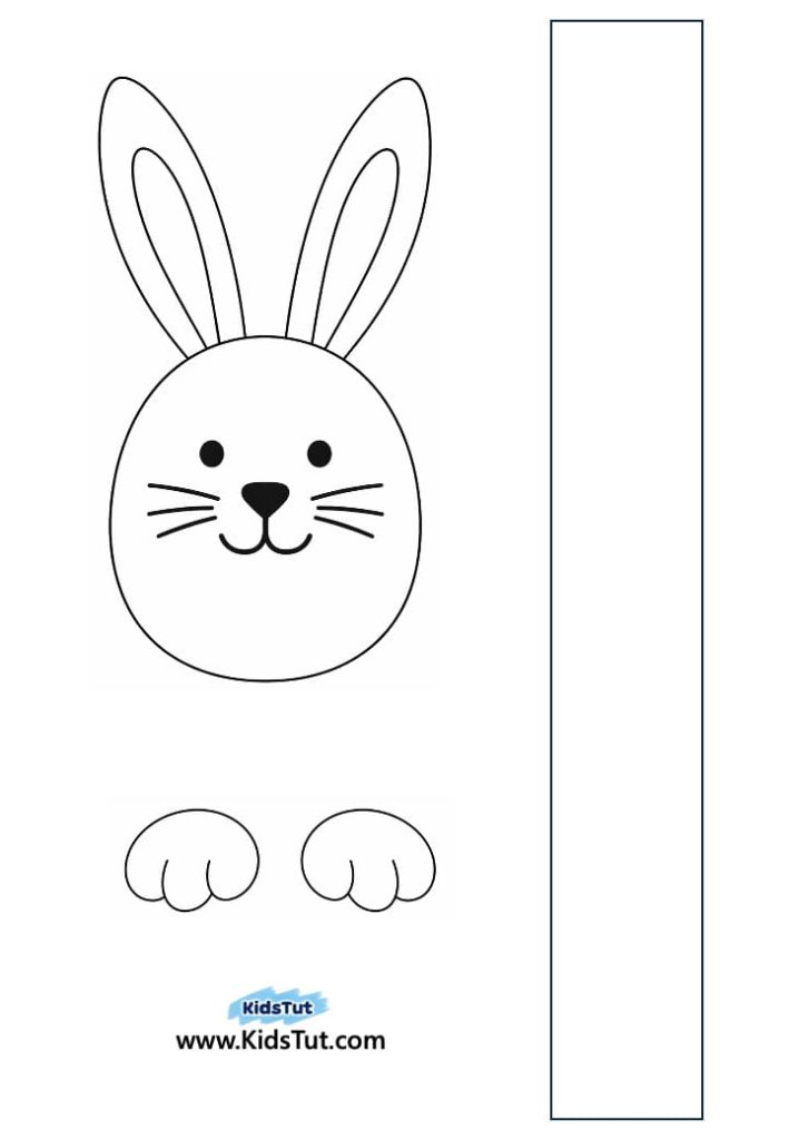 - Print the bunny face with ears, a paper strip, and feet on colored paper.