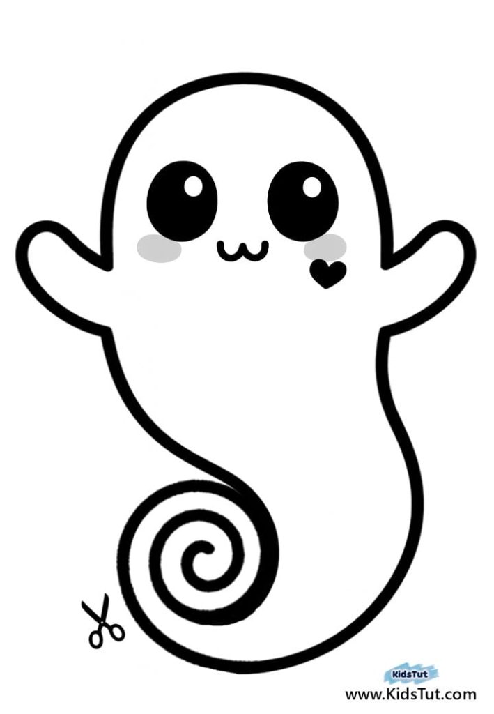 Then, unfold the cut spiral downward as a ghost tail.