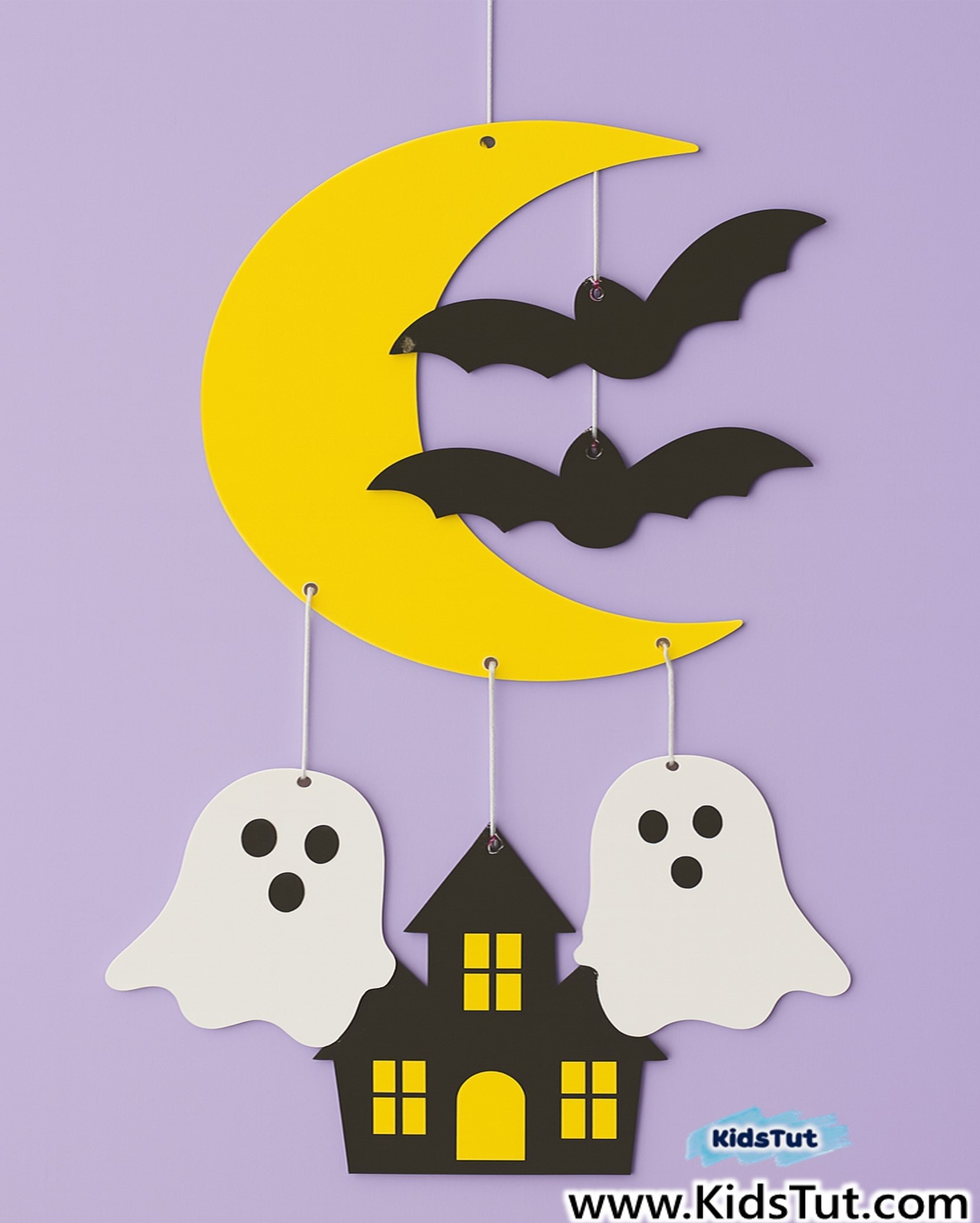 - Step 05: Attach yarn and connect all the images to the big moon.