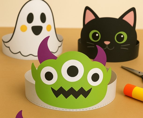 - Step 01: Print the provided templates — both the headband base and the Halloween character images.