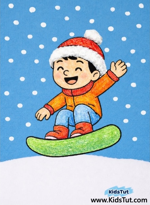 - Add white dots on the blue area to look like falling snow.