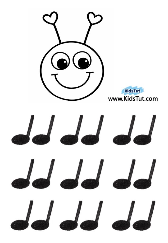 - Print the caterpillar’s head, legs, and letters inside heart shapes.