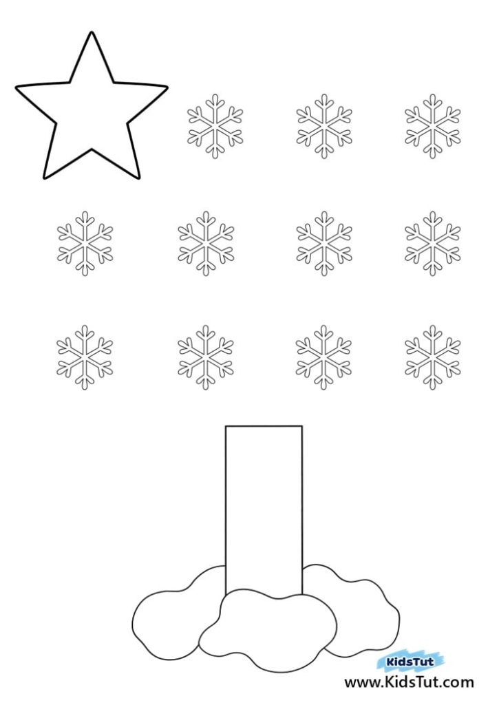Step 07: Finally, paste a big star on top, and decorate with ribbons, folded papers, or stickers. Paste a trunk with a snow cut-out image at the bottom to finish your tree.