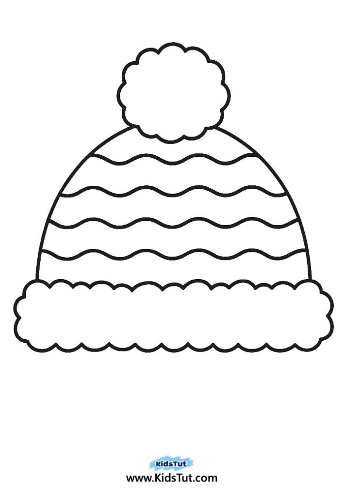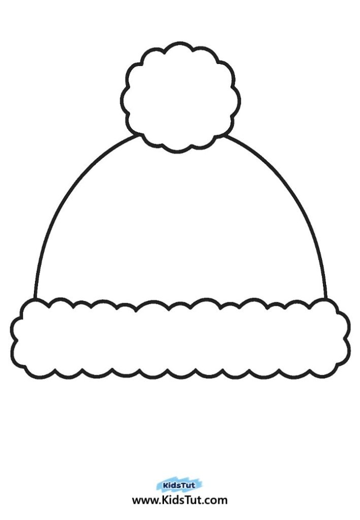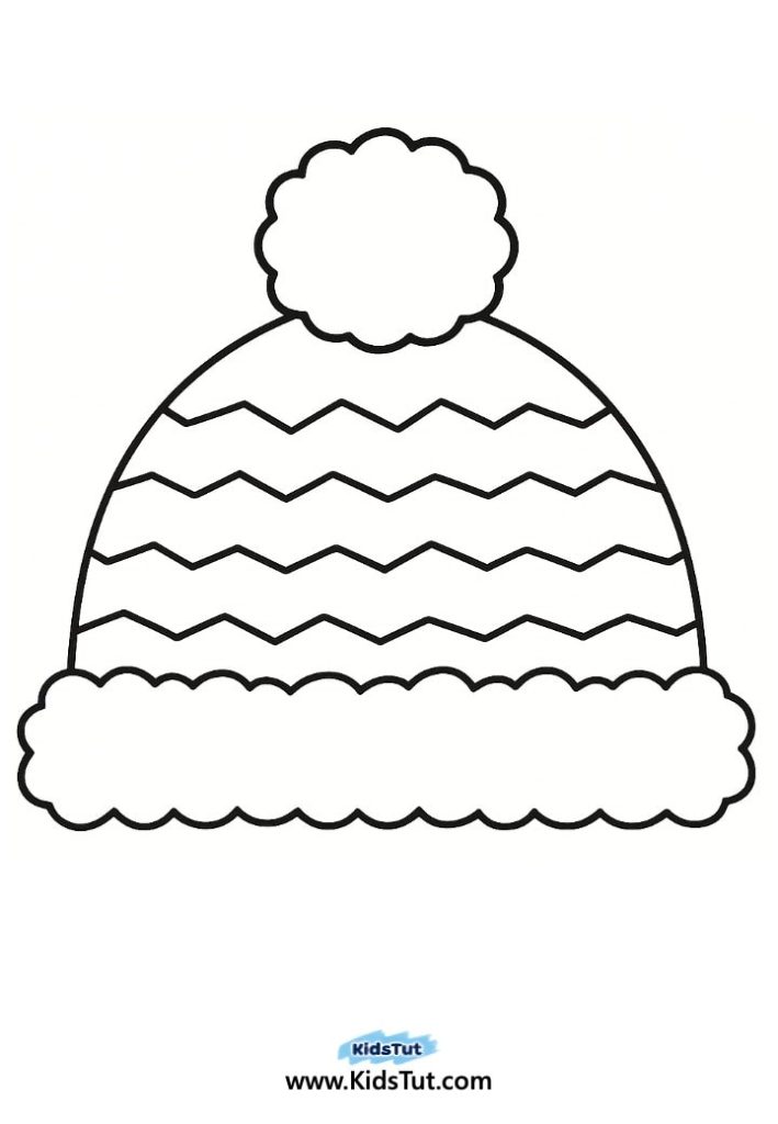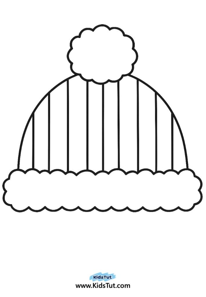 - Make hanging pom-poms: Paste two cotton pieces under the hat on both sides. Attach white yarn, and at the ends of the yarn, paste two pom-pom balls.