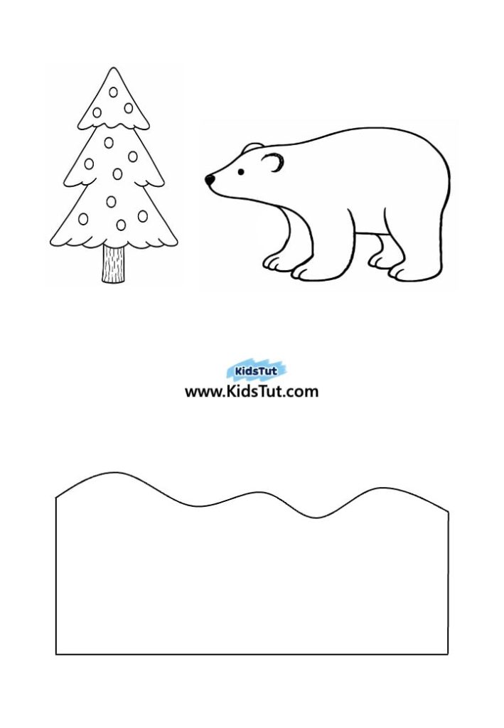 Step 2: Print the bear, snow, and tree templates on white paper.