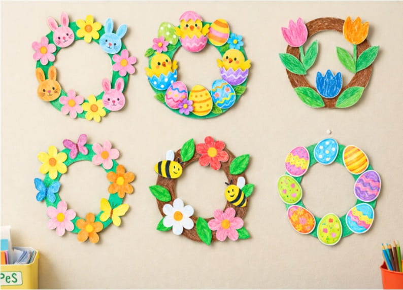 Spring and Easter wreath crafts are a joyful way for kids to celebrate the season! With colorful flowers, eggs, bunnies, and more, children can design their own wreaths to brighten up the classroom or home. Each wreath is unique, helping kids practice cutting, coloring, and gluing while building creativity and imagination. These crafts are easy, fun, and perfect for little hands.