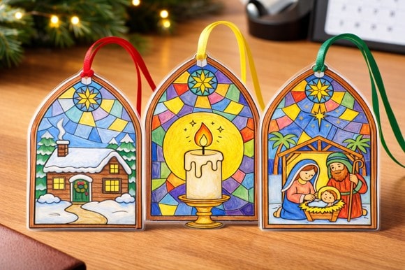 Looking for a fun and festive craft to do with kids this holiday season? These stained glass-style Christmas ornaments are bright, colorful, and super easy to make. With just a few simple supplies, children can create beautiful decorations that look like glowing church windows. Whether it’s a cozy cabin, a shining candle, or a sweet nativity scene, each ornament brings a little Christmas magic to your home. Let’s get crafting and make this season extra special!