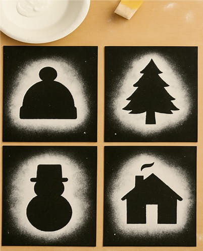 - Winter-themed stencils (sleigh, tree, bell, mitten)