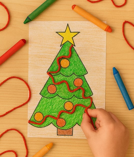 Looking for a festive craft that’s fun, colorful, and perfect for little hands? This easy yarn garland Christmas tree activity lets kids decorate their own tree using crayons and yarn—great for building fine motor skills and holiday excitement! Whether in the classroom or at home, it’s a joyful way to celebrate the season.