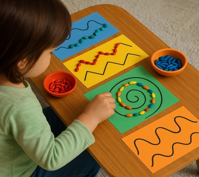 You only need two things to do this activity: pumpkin seeds and printed templates. We’ve provided all the templates you need to print below. It has 12 sheets with different patterns, and you can use them to help your children develop their motor skills. You can guide them to place the seeds along the pattern to do this activity. This is an easy and fun activity for speakers to quickly develop their skills.