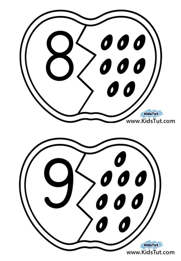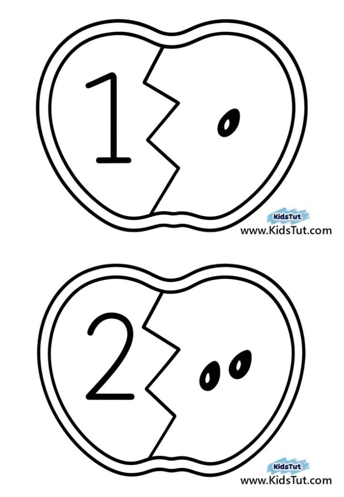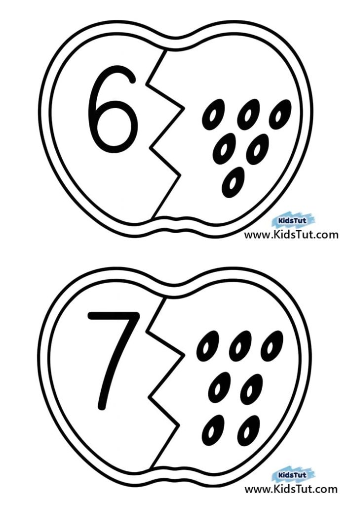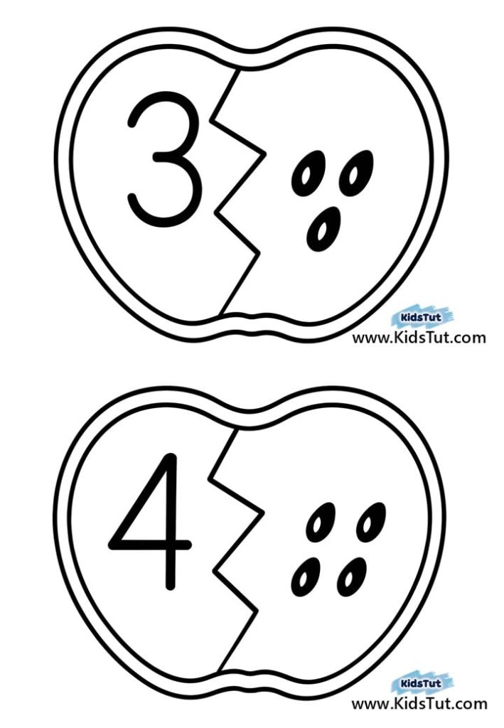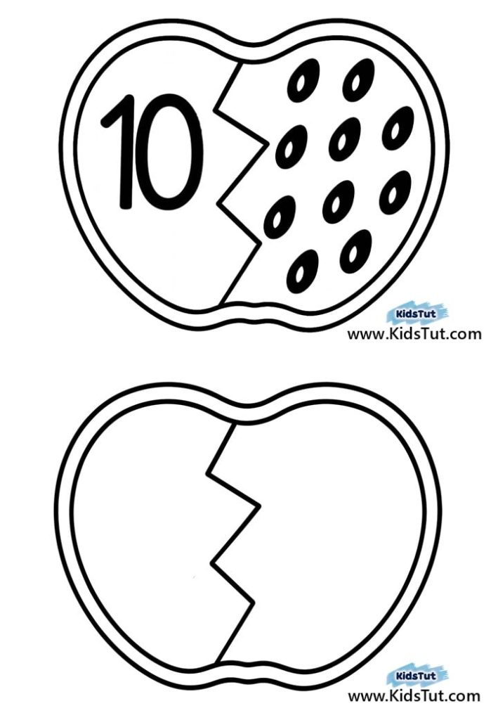 - Then, take a piece of an apple with numbers on it, choose a piece of an apple with the number of seeds that matches those numbers, put them together, and have the children create another half of the apple.