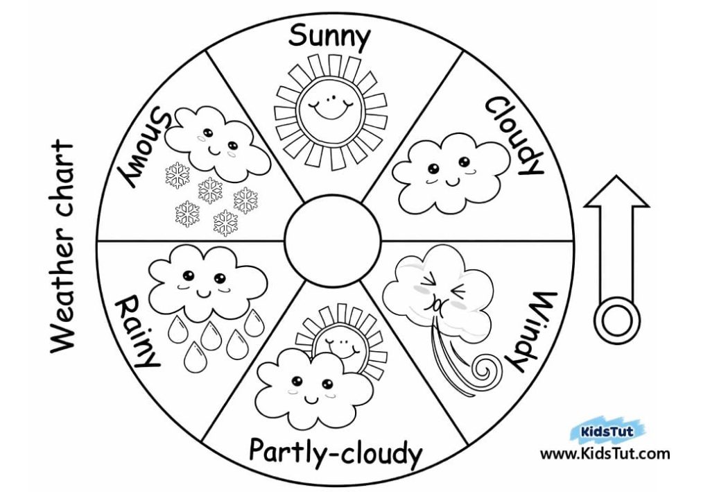 Weather Chart: It is very important to allow children to identify the changes around them. You can use this chart to teach about the constantly changing weather. Here, weather conditions such as Sunny, Rainy, Partly Cloudy, Snowy, and Windy are depicted in pictures and words.