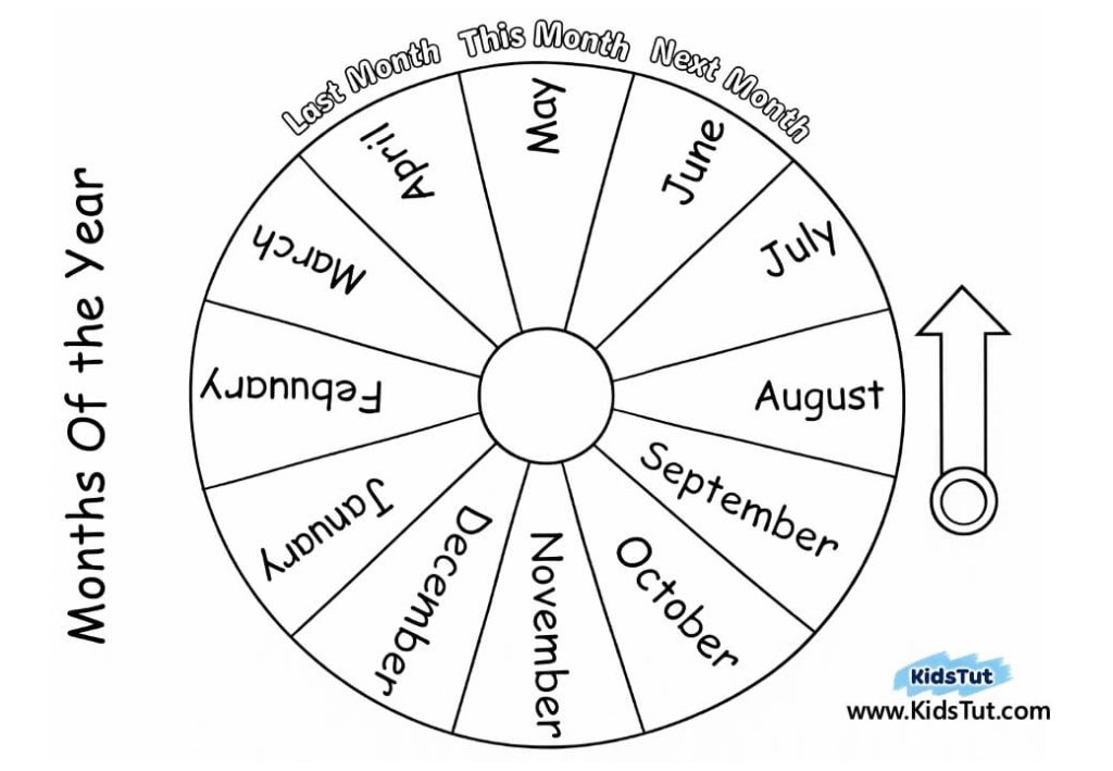 Months Chart: With 12 months in a year, this chart serves as an introduction to the calendar months for children. The chart features the names of the 12 months: January, February, March, April, May, June, July, August, September, October, November, and December. Each month’s name is represented within colored arc segments.