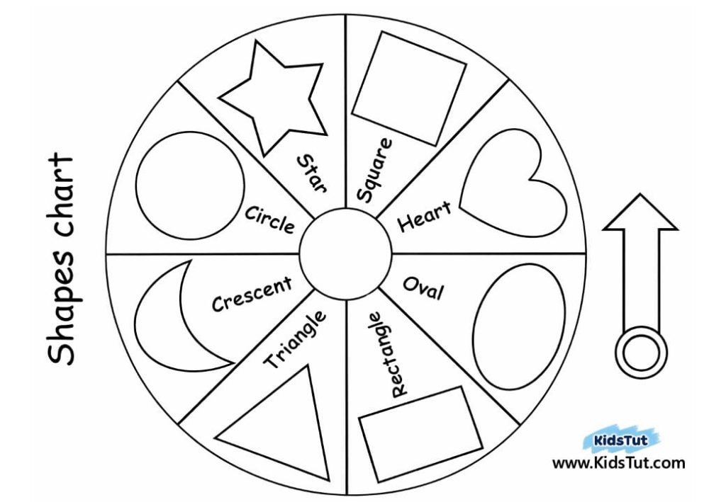 Shape Chart – Here you can introduce the 8 main shapes to children. Circle, Square, Rectangle, Heart, Oval, Triangle, Crescent, and Star shapes can be seen here. These shapes are represented in this chart with images in different colors.