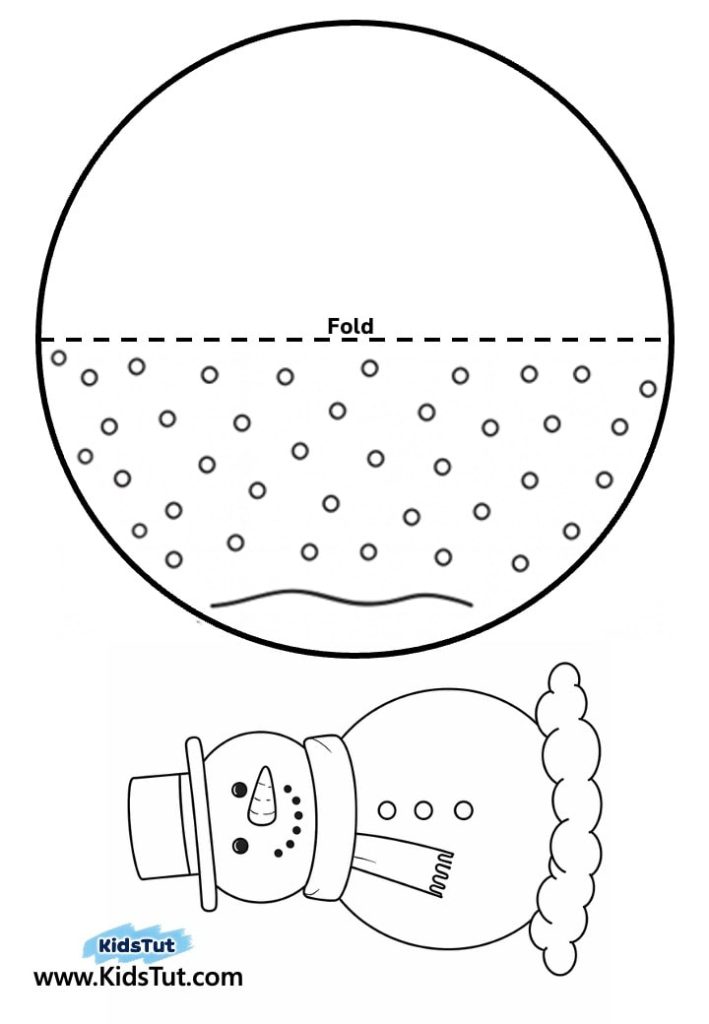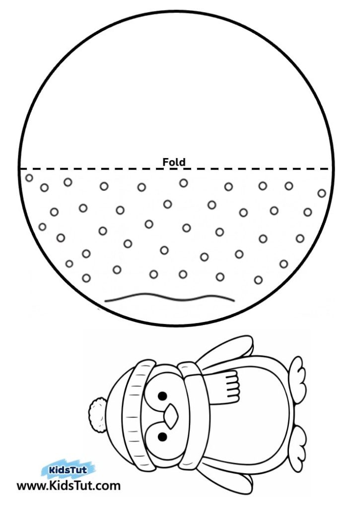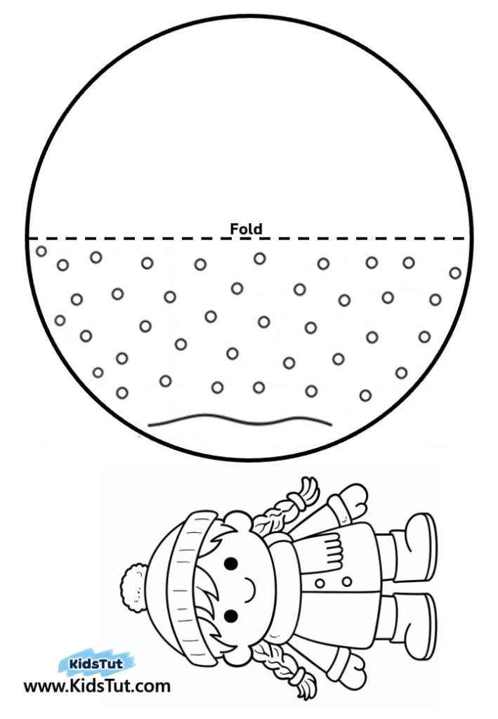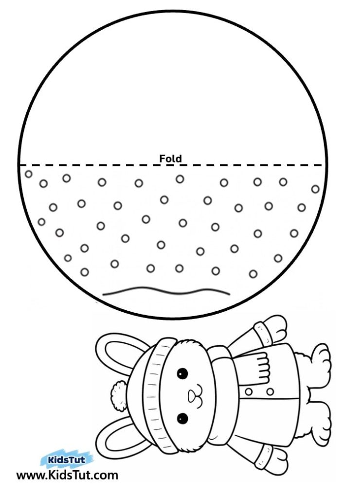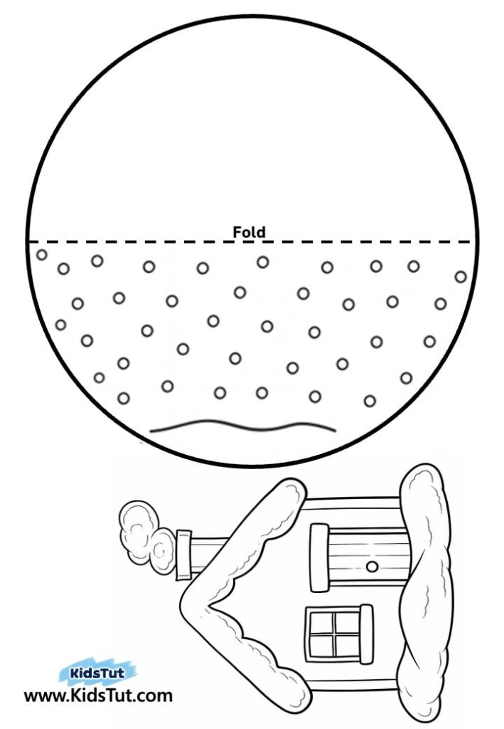 - Take your decorated circle and fold it along the dashed line to make a half‑circle. Now, take your Winter image and glue it onto the decorated half‑circle side. Press gently so it sticks well.