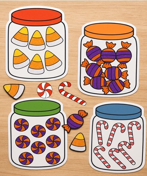 This is a fun and sweet activity designed to help kids improve their early math skills through sorting, counting, and problem-solving. You can use it during special events like Halloween, party time, or any joyful moment kids enjoy.