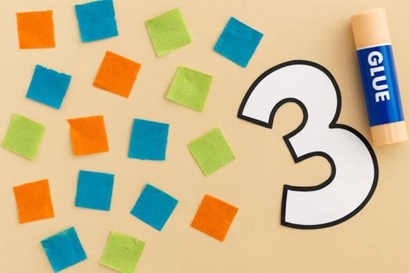 Give each child small squares of tissue paper in many colors. Kids can scrunch, fold, or crumple the pieces before gluing them inside the number outline. Also, this creates a textured, colorful look.