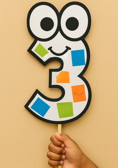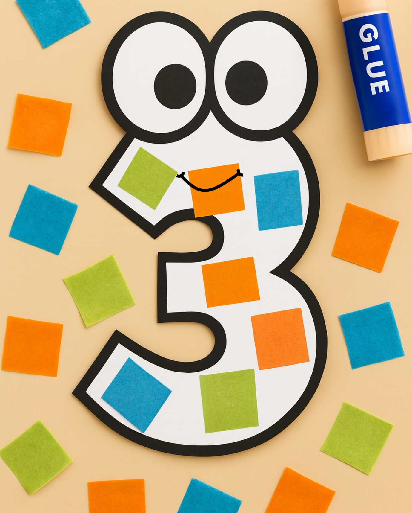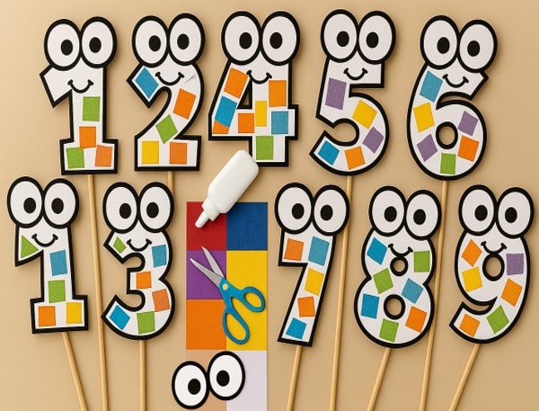The templates already include fun eye shapes. So, Kids cut out the eyes and glue them on top of the number. Suddenly, the number looks alive and friendly!