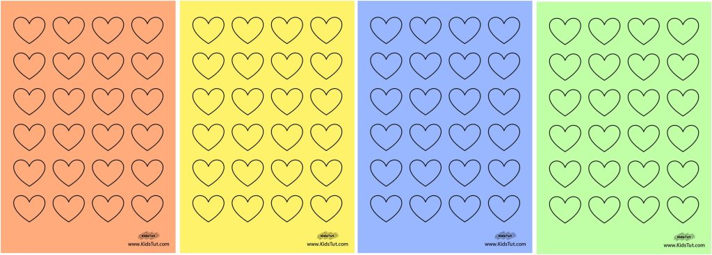 Now, take the heart templates that you have printed on different colored paper. Then cut out the heart shapes separately. Now you will have a lot of heart shapes in several colors. So give each child 10 or 15 hearts in several colors. You can give as many hearts as you like. So, depending on the age of the children, they can decide the number that is comfortable for them.