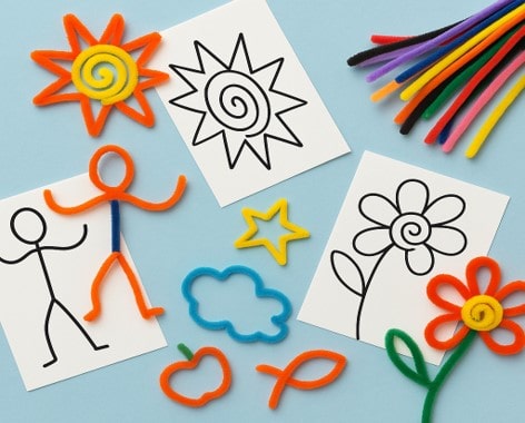 - Color recognition: Working with colorful pipe cleaners helps with visual learning.