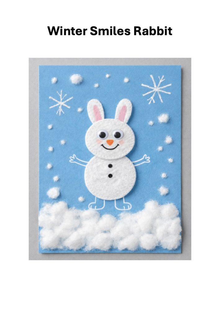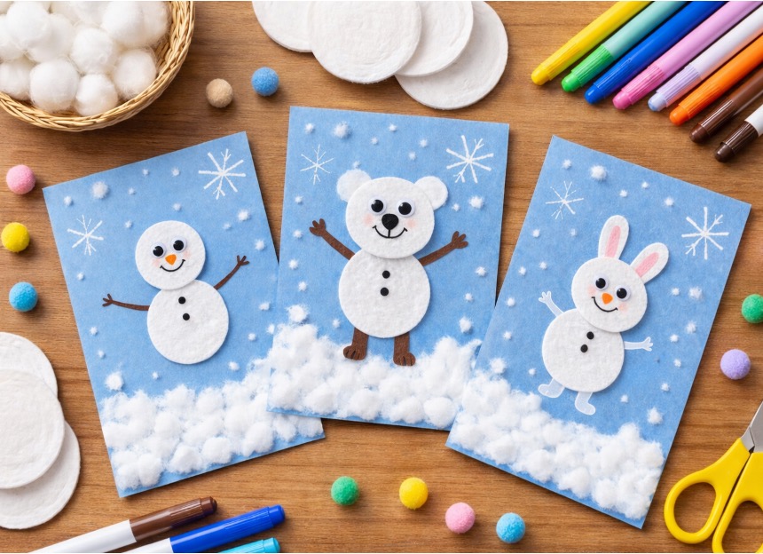 This winter animal craft is soft, simple, and full of charm. Kids can make cute animals like a snowman, polar bear, or bunny using cotton pads and colorful decorations. It’s a great way to explore textures and shapes while having fun with winter themes. Perfect for classrooms, holiday cards, or cozy afternoons at home.